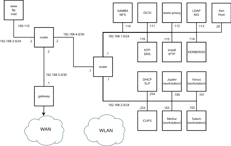 Dieses Beispielnetzwerk wird in der openSUSE®-Dokumentation in allen Kapiteln verwendet, die sich mit Netzwerken befassen.