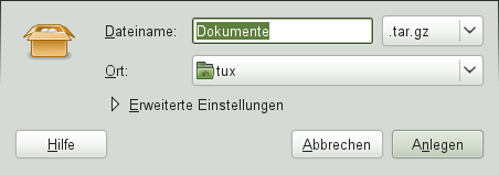 Wenn Sie manche Dateien längere Zeit nicht benutzt haben, aber auf Ihrem Computer behalten möchten, können Sie sie in ein TAR-Format zur Bandarchivierung komprimieren.