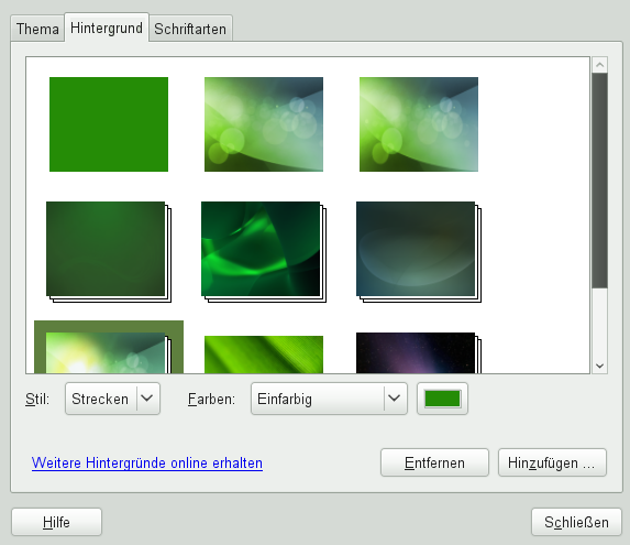 Wenn Sie ein Hintergrundbild aus den vorinstallierten Bildern auswählen möchten, suchen Sie das gewünschte Bild und wählen es aus. Nachdem Sie es ausgewählt haben, ändert sich der Hintergrund automatisch.