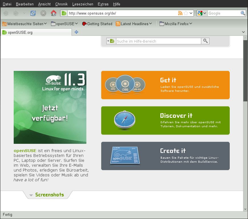 openSUSE® bietet die Tools, die Linux*-Benutzer für ihre täglichen Aktivitäten benötigen. Es verfügt über eine benutzerfreundliche grafische Umgebung (den GNOME*-Desktop), die mit dem zugrunde liegenden Linux-System kommuniziert und den Zugriff auf Dateien, Ordner und Programme sowie deren Verwaltung ermöglicht. openSUSE bietet eine integrierte Suite von Anwendungen für eine breite Palette von Büro-, Multimedia- und Internet-Aktivitäten. Die OpenOffice.org-Suite, mit der Sie Dateien in einer Vielzahl an Formaten bearbeiten und speichern können, ist ebenfalls darin enthalten. Die Office-Suite ist für verschiedene Betriebssysteme erhältlich. Sie können daher dieselben Daten auf unterschiedlichen Computerplattformen verwenden.