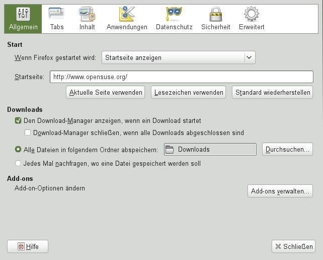 Wenn Sie den Standardordner für heruntergeladene Dateien anpassen oder den Popup-Blocker aktivieren oder ändern möchten, klicken Sie auf +.