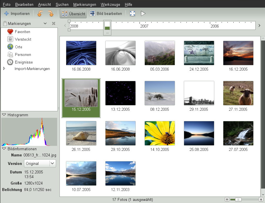 f-spot ist ein Verwaltungswerkzeug für Sammlungen von Digitalbildern, das auf den GNOME-Desktop zugeschnitten ist. Sie können damit Ihren Bildern verschiedene Tags zur Kategorisierung zuweisen. Außerdem bietet es zahlreiche praktische Bildbearbeitungsoptionen. Beispielsweise können Sie rote Augen entfernen, das Bild zuschneiden sowie Helligkeit und Farben anpassen. f-spot unterstützt sämtliche wichtigen Image-Formate, wie beispielsweise JPEG, PNG, TIFF und verschiedene händlerspezifische RAW-Formate.