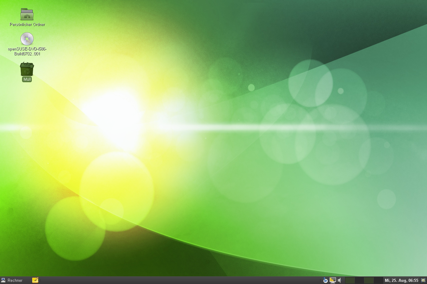 Taskleiste: Standardmäßig werden alle Anwendungen, die zurzeit auf dem Desktop ausgeführt werden, in der Taskleiste (dem mittleren Bereich zwischen Computer-Schaltfläche und Systemabschnitt der Kontrollleiste) angezeigt. Sie können auf diese Anwendungen zugreifen, indem Sie auf deren Namen in der Taskleiste klicken. Klicken Sie mit der rechten Maustaste auf einen Namen zum Verschieben, Wiederherstellen oder Minimieren des Fensters.