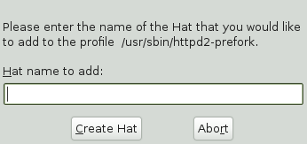 In the pop-up window, specify the name of the subprofile (hat) to add to your current profile and click . For more information, refer to Chapter 24, Profiling Your Web Applications Using ChangeHat.
