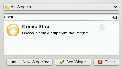 Select a widget and click . The widget appears on your desktop or in your panel.
