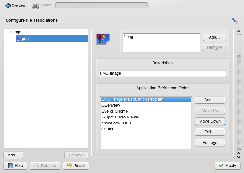 Similar to setting the default Web browser or e-mail application, you can change file associations in KDE. File associations determine which application should be used to open a specific file type.