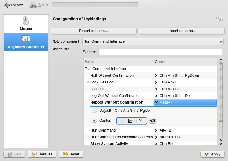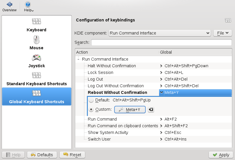 Allows you to configure date and time settings for your KDE desktop, to change size and orientation of your display, and to specify power management options for saving energy. Also holds settings for joysticks, keyboard and mouse. You can view and modify the predefined KDE shortcuts. You can also install personal or systemwide fonts here and configure your sound system.