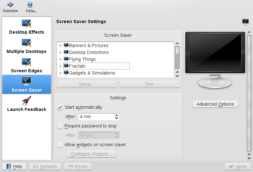 openSUSE® comes with predefined screen saver settings that you can adjust.