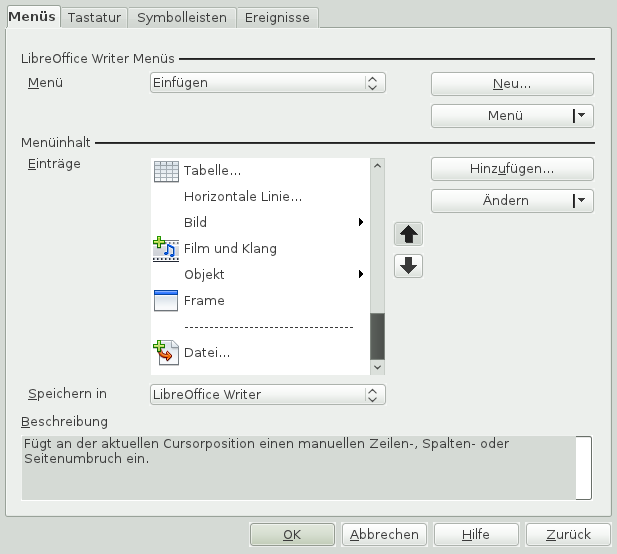 Mit LibreOffice können Sie die Standardeinstellungen im Menü anpassen.