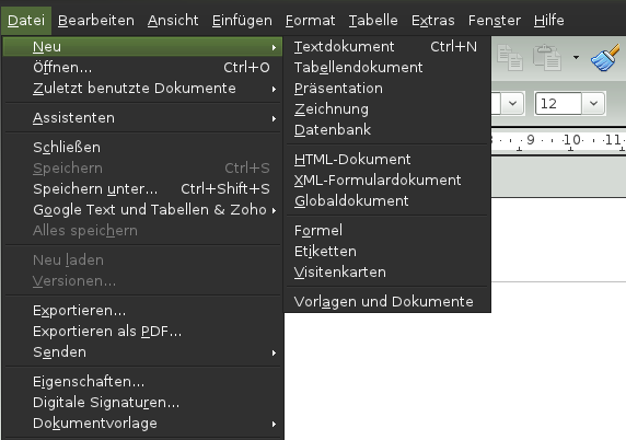 Neue Dokumente können auf zwei verschiedene Weisen erstellt werden: