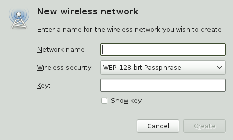 By default the NetworkManager frontend only lists connections that are already configured. The signal strength of each network is indicated by a series of bars, each one representing 10%. Encrypted wireless networks are marked with a green (WPA) or yellow (WEP) shield, while open networks are marked with a red shield.