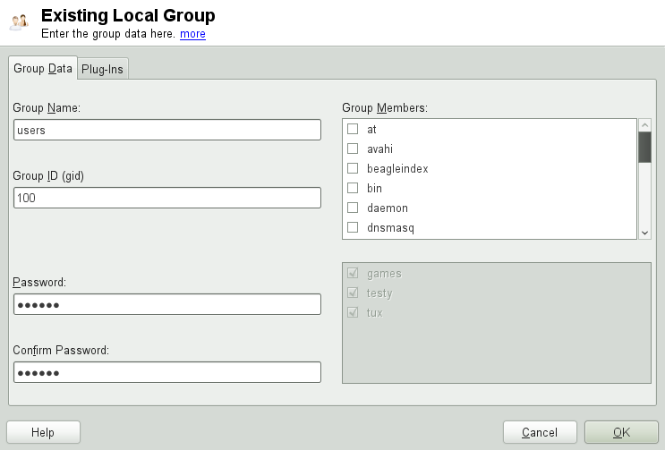 With YaST you can also easily add, modify or delete groups.