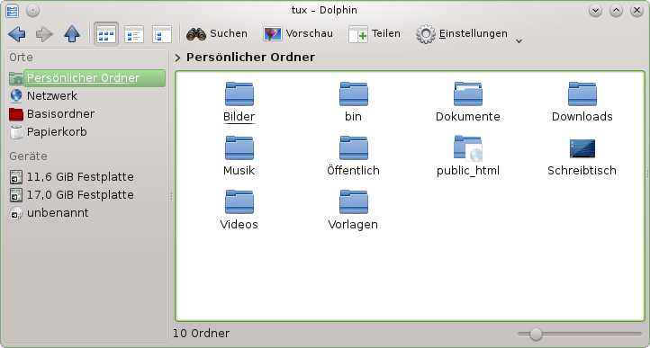 Drücken Sie Alt+F2, um das Dialogfeld zu öffnen. Geben Sie ein Kommando ein, beispielsweise dolphin. Schon während der Eingabe wird eine Liste von Anwendungen oder Aktionen im Dialogfeld angezeigt, die zu Ihrer Eingabe passen. Wählen Sie eines der Ergebnisse aus oder drücken Sie Eingabetaste, um die markierte Anwendung oder Aktion zu starten. Das Kommando zum Starten ist meist (aber nicht immer) der Anwendungsname in Kleinbuchstaben.
