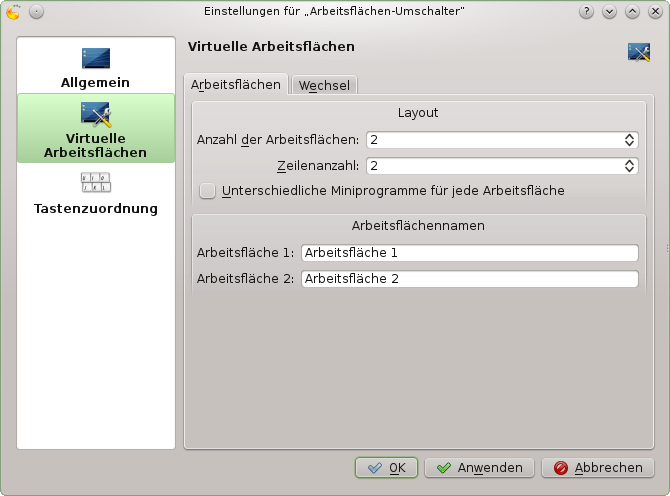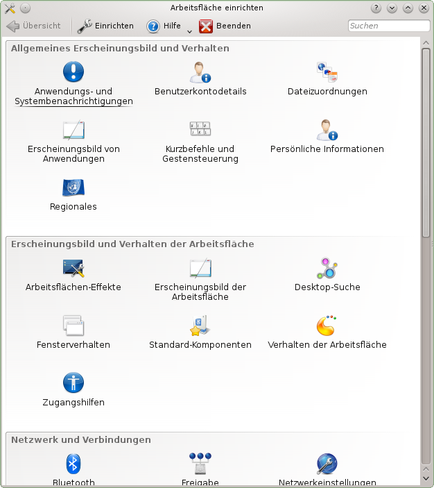 Außer dem Ändern einzelner Desktop-Elemente können Sie Ihren Desktop mit KDE ganz genau auf Ihre Bedürfnisse anpassen. Im Konfigurations-Dialogfeld finden Sie Möglichkeiten zur Anpassung des gesamten Erscheinungsbildes und Verhaltens Ihres Desktops.