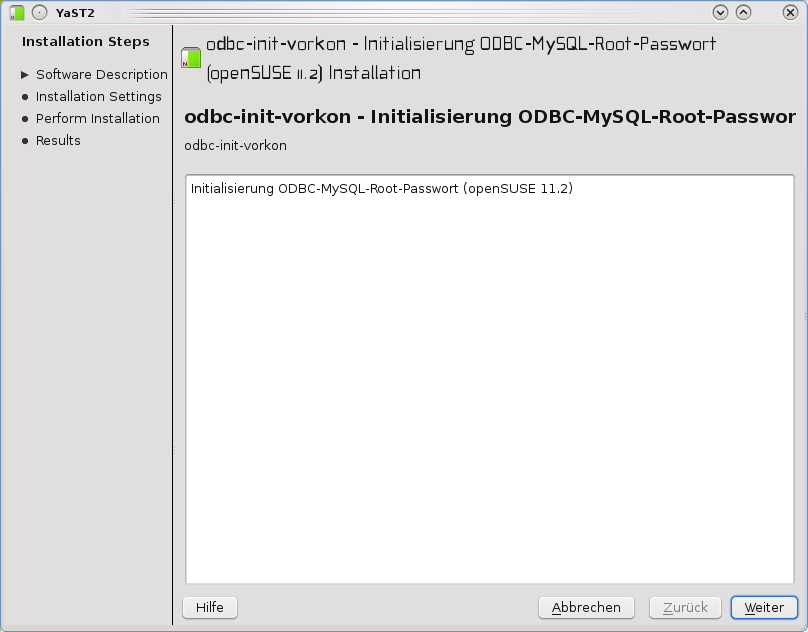ein weiteres Fenster, in dem Sie das root-Paßwort eingeben: