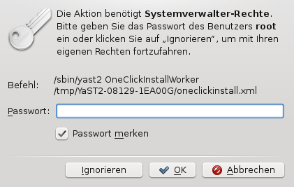 Da die Installation Systemverwalter-Rechte benötigt, öffnet sich